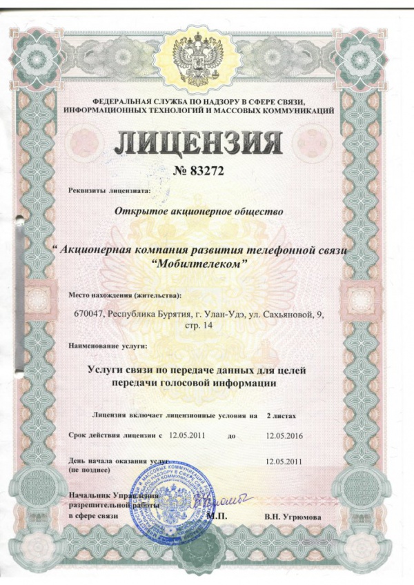Лицензия Федеральной Службы по надзору в сфере связи, информационных технологий и массовых коммуникаций №83272 от 12.05.2011г.